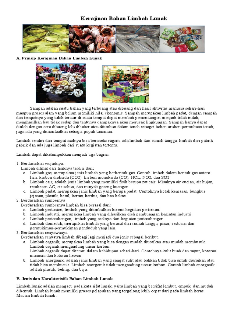 Jenis limbah bersifat lunak ini dikategorikan dalam bentuk limbah lunak organik dan limbah lunak anorganik. Ada dua jenis limbah organik, yaitu limbah organik basah dan limbah organik kering. Pengertian limbah anorganik dan contohnya. Limbah anorganik keras, adalah limbah anorganik yang memiliki kandungan bahan yang kuat dan tidak mudah dihancurkan dan tidak dapat di daur ulang. Sebab bahan limbah organik lunak dapat menghasilkan produk kerajinan unik dan kreatif yang memiliki nilai jual tinggi. Apabila ingin dipelajari lebih jauh lagi bahwa limbah jenis lunak. Contoh kerajinan limbah lunak organik beserta cara pembuatannya, meliputi dari bahan limbah kertas, kulit jagung, limbah jerami, dan pelepah pisang. Limbah lunak adalah mengacu pada kata sifat lunak, yaitu limbah yang bersifat lembut, empuk. Contoh limbah organik lunak pengertian limbah organik lunak adalah mengarah pada kata sifat lunak, yaitu limbah organik yang bersifat lembut, empuk, dan mudah dibentuk. Jika kamu mempunyai limbah lunak organi, maka jangan dibuang begitu saja. Sebagaimana kita tahu bahwa limbah adalah barang sisa atau dapat limbah anorganik merupakan kebalikannya, yaitu yang tidak dapat diuraikan, bahkan sampai ratusan tahun tidak bisa hancur, misalnya plastik. • alat peraga (contoh limbah lunak. Limbah lunak organik 6 kerajinan kertas lipat gulung mudah dan menarik untuk di coba cute766 / limbah anorganik , adalah jenis limbah yang sangat sulit atau bahkan tidak bisa untuk diuraikan atau tidak bisa membusuk.